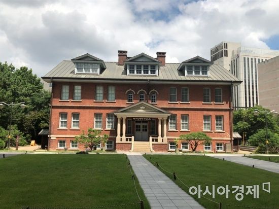 [아시아경제 이현우 기자] 덕수궁 돌담길을 걷다보면 옛날 만화 '빨간머리 앤'에 나온 것 같은 예쁜 학교 건물 하나와 만날 수 있습니다. '배재학당 역사박물관'이라고 쓰인 건물이죠. 건물 안으로 들어가면 잘 정돈된 잔디밭 위에 빨간 벽돌로 세워진 배재학당 건물과 만날 수 있습니다. '아펜젤러 탄생 160주년 기념 공원이 반대편에 위치해있죠.건물 정면에서 왼쪽 아래로 시선을 돌리면 '1916'이라고 쓰인 초석(礎石)이 눈에 들어옵니다. 이 건물은 배재학당 동관 건물로 1916년 3월 정초식을 열고 지은 건물이라 초석에 건립 연도가 쓰여있는 것이죠. 특히 지붕 위에 삼각형 모양의 다락지붕 3개가 놓여있고 정문 앞에도 그리스 신전 지붕처럼 삼각형 지붕이 있는 것이 특징입니다. 정말 미국의 옛날 학교 건물처럼 생겼습니다.배재학당 역사박물관 건물 하단에 위치한 주춧돌의 모습. 건립연도인 '1916'이 쓰여있다.