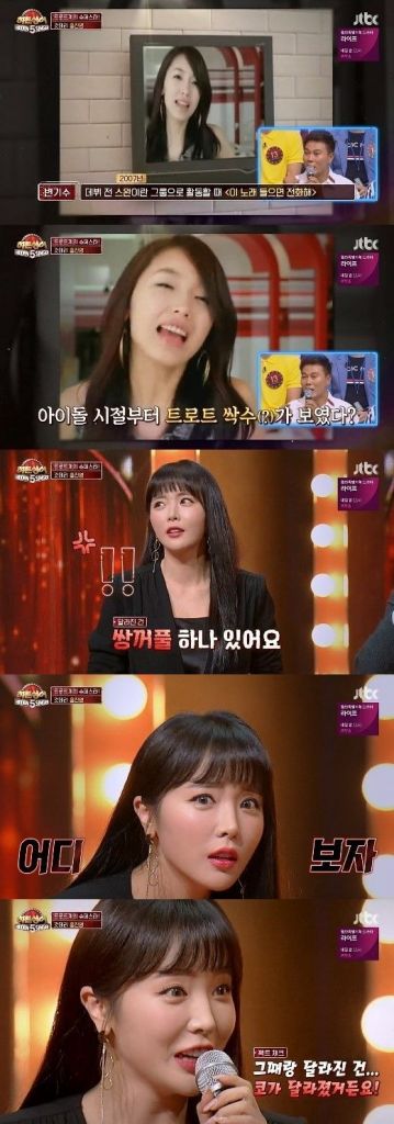 가수 홍진영이 시원하게 성형수술 사실을 고백했다.29일 방송된 JTBC ‘히든싱어5’에 홍진영이 원조 가수로 출연한 가운데 모창 능력자들과 대결을 펼쳤다.이날 코미디언 변기수는 홍진영이 그룹 스완으로 활동할 때를 떠올리며 “그때와 달라진 건 별로 없다. 스완 때와 지금 달라진 건 쌍꺼풀 하나”라고 유쾌한 농담을 던졌다변기수의 쌍커풀 수술 언급에 홍진영은 “아 쌍꺼풀이 달라졌나요?”라면서도 “그때랑 달라진 건, 코가 달라졌거든요. 정정하도록 하겠습니다”라고 재치있게 답해 웃음을 자아냈다.한편 홍진영은 모창 출연자들과의 치열한 대결 끝에 최종 우승을 차지했다. 준우승은 트로트 가수 지나유가 차지했다.온라인이슈팀 issue@asiae.co.kr<ⓒ세계를 보는 창 경제를 보는 눈, 아시아경제(www.asiae.co.kr) 무단전재 배포금지>