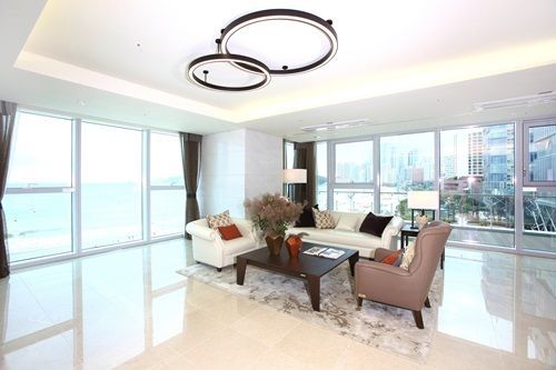 ‘엘시티 더 레지던스’ 76A타입 거실 모습. 고급아파트의 인테리어와 특급호텔의 서비스를 조화시킨 주거형 레지던스이다.