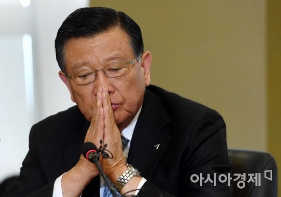 박삼구 금호아시아나그룹 회장이 4일 서울 종로구 금호아시아나 본사에서 기자회견을 열고 아시아나항공의 '기내식 대란' 사태 등 각종 논란에 대해 해명하고 있다./김현민 기자 kimhyun81@