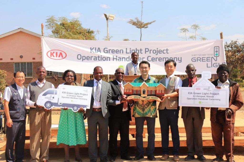 지난 1일(현지시간) 아프리카 말라위 지역에서 열린 'GLP 중등학교' 이양식에서 관계자들이 기념사진을 촬영하고 있다. (사진=기아자동차)