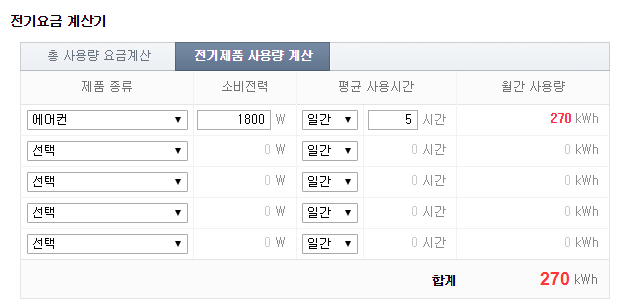 사진=네이버 '전기용품 사용량 계산' 캡처