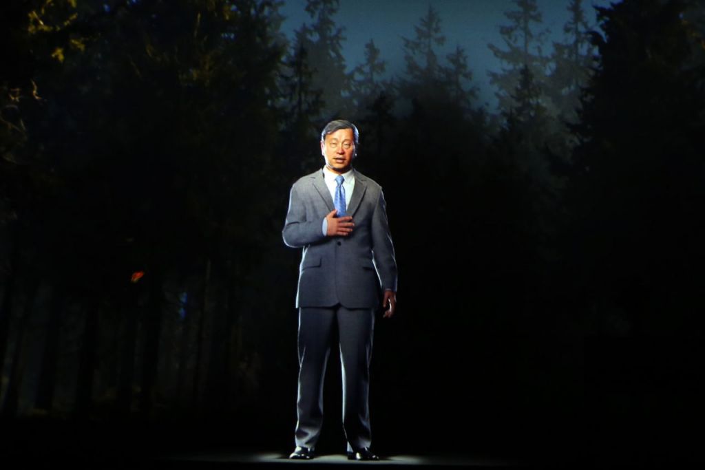 홀로그램으로 등장한 고(故) 최종현 SK그룹 회장 [사진= SK 제공]