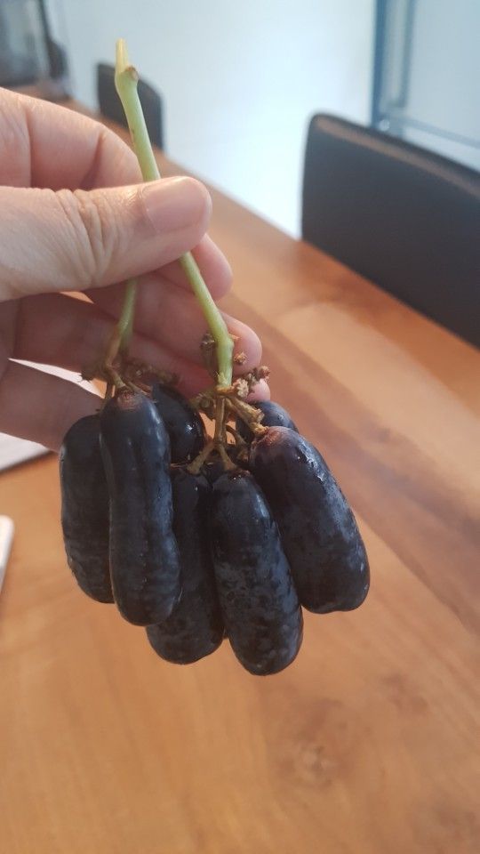 [아시아경제 지연진 기자] "너는 누구냐." 생전 처음 본 모양새에 고개가 절로 갸우뚱했다. 국산 포도의 색인 검푸른 빛깔에 주렁주렁 매달린 모습은 포도와 비슷했지만 타워형으로 길쭉한 모양이 품종을 가늠할 수 없다. '블랙사파이어포도'라는 점원의 설명을 듣고 나서야 고개를 끄덕였다.롯데슈퍼가 이달초 롯데 프리미엄 푸드마켓 일원점을 오픈하며 유통사 최초로 선보인 미국산 포도다. 길쭉한 모양으로 '가지포도'라고도 불리며 얇고 뾰족한 모양이 독특해 '고추포도', '위치핑거(Witch fingerㆍ마녀의 손가락)포도'라는 별칭을 갖고 있다. 실제 검정색 매니큐어를 칠해 놓은 마녀의 손톱을 연상시키는 외관 때문에 "한번 맛을 보라"는 권유에도 지인은 손사래를 치기도 했다. 하지만 이색적인 포도 모양은 호기심을 자극했다. 국산 포도는 물론, 한ㆍ칠레 자유무역협정(FTA)에 따라 손쉽게 구할 수 있는 칠레산 포도는 한입에 쏙 들어가는 반면, 입안을 가득 채우는 과육을 즐기기는 어렵다. 하지만 블랙사파이어포도는 두 번에 나눠 먹을 정도의 크기로, 한 입에 넣으면 꽉 찬 존재감을 자랑했다.특히 국산 포도는 입안에서 씨를 발라내는 데 들이는 노력에 비해 과육의 양이 턱없이 부족하다는 느낌이 항상 아쉬웠다. 거봉 포도 정도는 돼야 충분한 과즙을 느낄 수 있지만, 이 역시 굵은 씨가 걸림돌로 여겨졌다. 포도의 껍질과 과육, 씨까지 한꺼번에 씹어 먹는 것도 손쉽게 포도를 즐기는 방법이지만, 여러 번 씹는 것조차 귀찮을 때가 있지 않은가.하지만 블랙사파이어포도는 두 번에 나눠 먹을 정도의 크기로, 한입에 넣으면 꽉 찬 존재감을 자랑했다. 칠레산 포도와 마찬가지로 과육이 단단했고, 당도도 비슷했다. 롯데슈퍼에 따르면 블랙사파이어포도는 약 18~22브릭스다. 신맛보다 달콤한 맛이 강했고, 칠레산 포도처럼 껍질째 먹어도 부담이 없다. 다만 수입산인 만큼 식초물이나 베이킹소다를 풀어놓은 물에 10분 정도 담갔다 씻어 먹는 것을 추천한다.호기심에 한 알을 맛보자 달큰한 향이 입안에 남았다. 한 송이를 손에 쥐고 본격적으로 먹기 시작했다. 무엇보다 씨가 없다는 점에서 손길을 멈출 수가 없었다. 포도 한 알을 한입에 넣고 오물거리면 과육이 입안 가득 퍼졌다. 길쭉한 모양인 만큼 잘라 먹는 재미도 느낄 수 있었다. 한 송이를 모두 먹어 치우자 배가 불렀다. 아침식사 대용으로 충분했다. 다만 '마녀의 손가락'이라는 별칭 만큼 주변의 반응은 엇갈렸다. 새로운 먹거리에 신기하다는 시선도 있지만 모양이 "징그럽다"는 반응도 보였다.◆당신은 먹어야 돼#포도씨 발라내는 것도 버거운 '귀차니즘'에 안성맞춤◆한줄느낌#이색적인 겉모양과 달리 우리가 아는 포도맛◆가격#100g당 1990원지연진 기자 gyj@asiae.co.kr<ⓒ세계를 보는 창 경제를 보는 눈, 아시아경제(www.asiae.co.kr) 무단전재 배포금지>