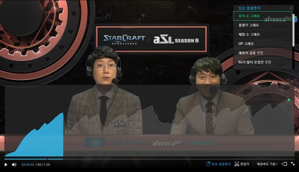 이용자수·채팅수·선물수·하이라이트 지점 등 그래프로 제공