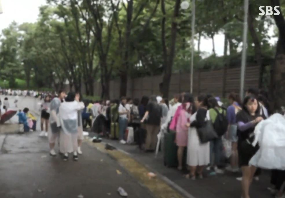 방탄소년단의 ‘굿즈’를 구매하기 위해 서울 잠실 주경기장에서 대기 중인 팬들.사진=SBS 뉴스 화면 캡처