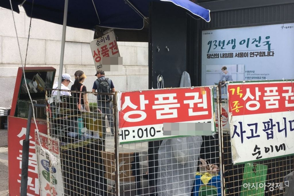 남대문시장 근처 노점에서 상품권 판매 팻말을 걸어 놓은 모습. /이재익 기자 one@
