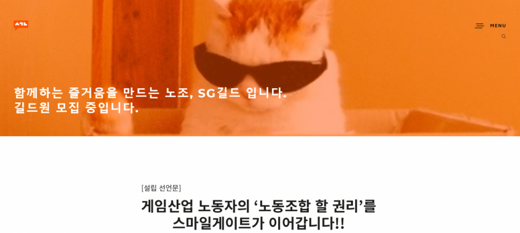 민주노총 전국화학섬유식품산업노동조합 스마일게이트지회 홈페이지 캡처