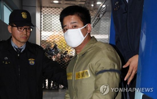 딸의 동창인 중학생을 성추행하고 살해한 혐의로 1심에서 사형을 선고받은 이영학이 17일 오후 서울 서초구 서울고등법원에서 열린 항소심 첫 공판 출석을 위해 법정으로 향하고 있다.사진=연합뉴스