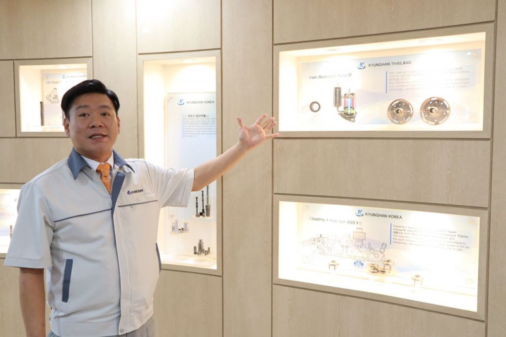 이준형 경한코리아 부사장이 지난 6일 경남 창원 본사에 위치한 제품 전시실에서 자동차 핵심 부품들에 대해 소개하면서 스마트팩토리 구축 등에 대해 이야기를 하고 있다.