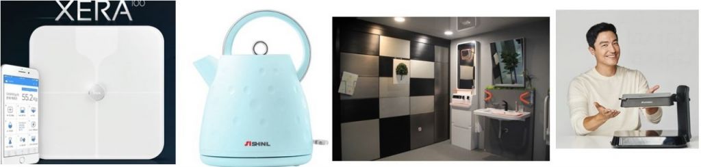 왼쪽부터 이누스 '스마트체중계', 신일산업 '무선 주전자', 로얄앤컴퍼니 '유니버셜 시스템 욕실', 해피콜 'X2 싱크릴'.