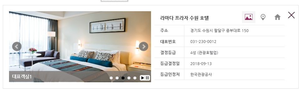 [아시아경제 최신혜 기자] 수원 내 유일한 특1등급(현 5성급) 호텔이었던 라마다 프라자 수원 호텔(라마다 프라자 수원)이 등급심사에서 4성급으로 강등됐다. 호텔 측은 등급 심사제가 기존 특급 호텔 분류체계에서 2015년 5성 체계로 바뀌며 심사기준을 충족하지 못해 자발적으로 4성급을 신청했다고 설명했다.28일 한국관광공사의 '호텔업 등급결정사업' 심사자료를 확인한 결과 경기도 수원시 팔달구 중부대로에 위치한 라마다 프라자 수원이 4성급으로 다운그레이드됐다. 라마다 프라자 수원은 미국 뉴저지 파시퍼니에 소재한 윈덤 월드와이드가 운영하는 호텔 체인 중 하나다. 윈덤 월드와이드는 라마다 호텔 서울을 비롯해 국내에 32곳의 직영호텔을 운영 중이다.라마다 프라자 수원은 2009년 4월24일부터 운영해온 호텔이다. 본관은 지상 18층, 지하 6층 규모이며 신관은 지상 6층, 지하 2층 규모다. 스탠다드 룸, 디럭스 룸, 스위트 룸, 이그제큐티브 플루어ㆍ라운지 등 총 288개의 객실을 보유했다. 개관 당시 경기도내 첫 특1등급 호텔로 지정되며 화제를 낳았다. 특1등급 호텔은 한국관광호텔업 등급평가 기준에 따라 객실, 식당 및 주방, 주차장 시설 등 9개 부문 총점이 1000점 만점에 900점을 넘는 최고급 호텔에만 부여됐다.호텔 관계자는 "5성급 호텔이 되기 위해서는 객실 수뿐 아니라 식당, 연회장, 수영장 등의 각종 시설기준을 만족해야 하는데 객실수 200개 이상의 기준은 충족했지만 수영장, 연회장 등 부대시설 개수와 시설 등이 미달돼 자발적으로 4성급을 신청한 것"이라고 했다.