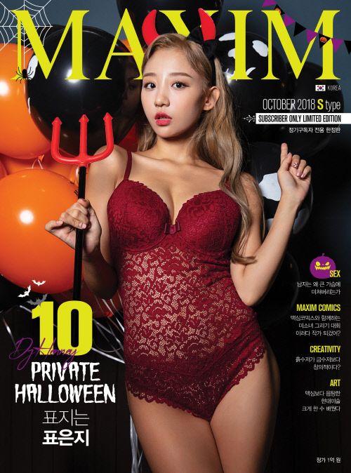 [아시아경제 온라인이슈팀] 남성지 맥심(MAXIM KOREA)이 10월호 정기구독자 전용 S타입 표지를 공개했다.표은지가 장식한 맥심 10월호 한정판은 서점이나 온라인 매장에서 만날 수 있는 일반 표지와 달리 오직 맥심 홈페이지에서 정기구독을 신청한 독자에게만 배송된다.모델을 넘어 연기자, 이제는 DJ 활동까지 시작한 모델 표은지는 다양한 매력으로 10만 팔로워를 보유한 SNS 스타답게 섹시함과 귀여움을 동시에 뽐냈다.그녀는 특유의 장난스럽고 귀여운 표정에 과감한 빨간색 시스루 란제리를 소화하며 한정판의 소장가치를 높이며 매번 일반판과 다르게 수록되는 브로마이드 역시 독자들의 기대를 불러일으켰다.한편, 표은지의 섹시한 핼러윈 화보가 담긴 이번 맥심 10월호에는 이외에도 퍼포먼스 끝판왕 남성듀오 노라조, 유튜브 스타 셰프 SOF(소프), K리그 인천 유나이티드 FC 선수단, 미스맥심 콘테스트 6강 란제리 화보, 인도 맥심 표지를 장식한 네하 샤르마 등 다양한 인물의 화보와 인터뷰가 실렸다.<center><div class="slide_frame"><input type="hidden" id="slideIframeId" value="2015060110310936417A">