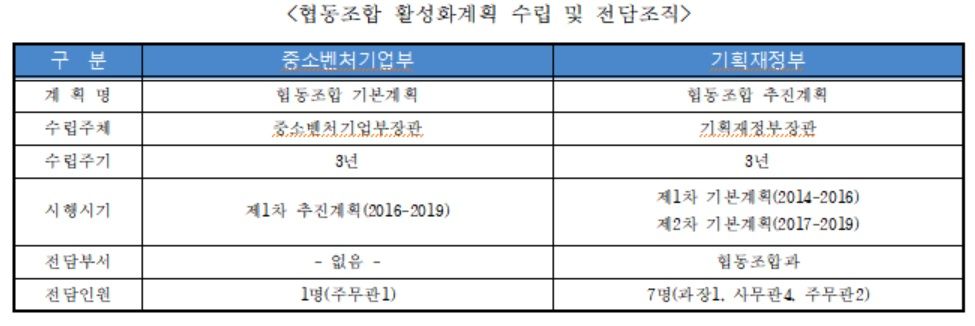 [아시아경제 김대섭 기자] 소상공인과 중소기업 협동조합 지원 정책을 담당하는 중소벤처기업부에 전담자가 단 1명에 불과해 제대로 된 협동조합 정책을 펼 수 없다는 지적이 나왔다.12일 국회 산업통상자원중소벤처기업위원회 소속 박정 의원실에 따르면, 소상공인과 중소기업 협동조합을 담당하며 400억원의 예산을 집행하는 중기부에는 전담부서가 없는 것으로 나타났다. 이와 비교해 예산 47억원을 집행하는 기획재정부에는 7명으로 구성된 협동조합과가 있다.중기부 장관은 중소기업협동조합법에 따라 3년마다 '협동조합 활성화 추진계획'을 수립해야 한다. 하지만 전담조직도 없이 담당자 1명이 정책을 기획ㆍ시행하고 있어 각 지원사업에 대한 종합적인 정책판단이 부재한 상황에서 예산을 집행하고 있는 셈이다.기재부의 협동조합 사무는 협동조합기본법에 의한 기본계획 수립과 실태조사가 핵심이고 주요정책 집행은 중기부가 하고 있다. 부대업무는 중간지원조직에 위탁하고 있어 협동조합활성화를 위한 기재부의 역할에는 한계가 있다.박정 의원은 "협동조합의 중요성이 날로 커지고 있는 상황에서 기재부는 국가 경제정책 컨트롤타워로서 본연의 기능을 수행하고 협동조합 사무는 현장성과 전문성을 가진 중기부로 이관하는 문제를 검토할 시점이 왔다"며 "중기부에 협동조합 전담부서를 설치해 중소기업ㆍ소상공인의 경쟁력 강화로 이어지는 협동조합 정책을 시행해야 한다"고 지적했다.김대섭 기자 joas11@asiae.co.kr<ⓒ세계를 보는 창 경제를 보는 눈, 아시아경제(www.asiae.co.kr) 무단전재 배포금지>