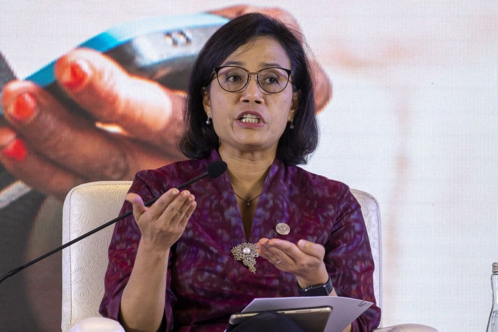 스리물리야니 인드라와티 인도네시아 재무장관이 지난 11일(현지시간) 인도네시아 발리에서 열린 IMF-WB 연차회의에서 연설하고 있다. [이미지출처=EPA연합뉴스]
