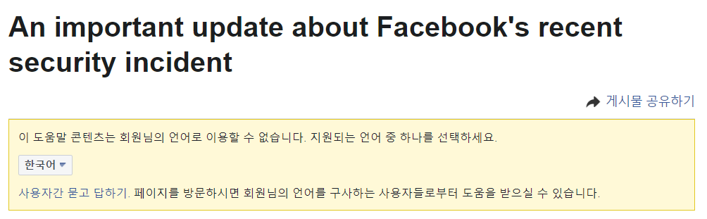 이용자들은 해당 글 하단에서 계정이 해킹 당했는지 확인할 수 있다. 만일 계정이 해킹 당했다면 '보이스피싱', '스미싱' 등 사기를 주의해야 한다. 이름, 성별, 사는 지역, 생일, 페이스북에 접속한 기기 이름, 출신학교 등 갖가지 정보가 유출됐을 수 있기 때문이다. 페이스북은 곧 해킹 당한 3000만 이용자 모두에게 어떤 정보가 유출됐는지, 어떻게 대처해야 하는지 안내하는 메시지를 보낼 예정이다.페이스북은 지난달 29일 해커들이 지난해 7월부터 최근까지 페이스북의 '타임라인 미리보기' 기능의 액세스 토큰을 확보했다고 발표했다. 타임라인 미리보기 기능은 본인의 프로필이 다른 이용자들에게 어떻게 보이는지 확인하는 기능이다. 또 액세스 토큰은 페이스북 앱을 켤 때 암호를 입력하지 않고도 로그인 상태를 유지해주는 역할을 한다. 해커들은 이 토큰을 훔쳐 계정에 접근할 수 있었다.조한울 기자 hanul0023@asiae.co.kr<ⓒ세계를 보는 창 경제를 보는 눈, 아시아경제(www.asiae.co.kr) 무단전재 배포금지>