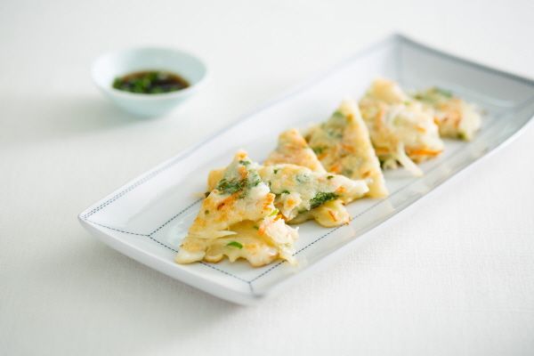4. 달군 팬에 식용유를 두르고 반죽을 한 숟가락씩 떠 넣고 앞뒤로 노릇노릇하게 지진 다음 초간장과 곁들인다.