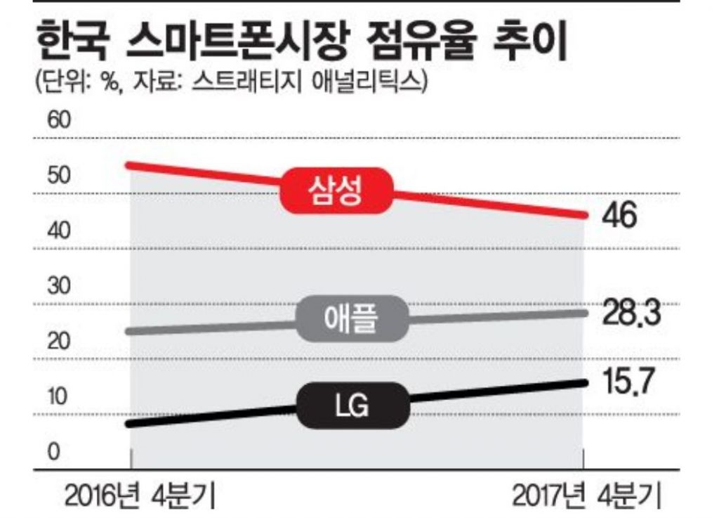 아이폰 3종의 전방위적 공세로 4분기 애플이 한국에서 역대 최고 점유율을 경신하고 국산폰 비중을 60% 아래로 밀어낼 위험이 커졌다. 시장조사기관 스트래티지 애널리틱스(SA)에 따르면 애플이 28.3%로 역대 최고 점유율을 기록한 지난해 4분기 삼성전자(46%)ㆍLG전자(15.7%)의 합산 점유율은 61.7%였다.이에 삼성전자는 지난 8월 출시한 갤럭시노트9 보상 프로그램을 대대적으로 홍보하며 애플의 공세를 견제하고 있다. 삼성전자는 갤노트9 구매자가 기존폰을 반납할 때 중고 시세보다 최대 2배에 달하는 금액을 환급하기로 했다. 갤럭시S7ㆍS8ㆍ노트 팬 에디션을 비롯해 아이폰6ㆍ7 사용자가 대상이다.LG전자도 24일 V40 씽큐 출시로 힘을 보탠다. V40는 세계 최초로 펜타(5개) 카메라를 탑재한 스마트폰으로 인물ㆍ풍경 모두에 탁월하다는 평을 받고 있다. 출고가는 104만9400원이다. 그러나 갤노트9의 출시효과가 일찌감치 소진된 데다 V40의 브랜드파워가 낮아 아이폰 3종 출시는 국산폰에 큰 부담이 될 전망이다.한 통신업계 관계자는 "위로는 충성도 높은 애플, 아래에선 가성비 좋은 샤오미 등이 치고 들어오며 국산폰의 입지는 점점 축소되고 있다"며 "향후 단말기 완전자급제까지 도입되면 국산폰 경쟁력은 더 악화될 것으로 보인다"고 말했다.임온유 기자 ioy@asiae.co.kr<ⓒ세계를 보는 창 경제를 보는 눈, 아시아경제(www.asiae.co.kr) 무단전재 배포금지>