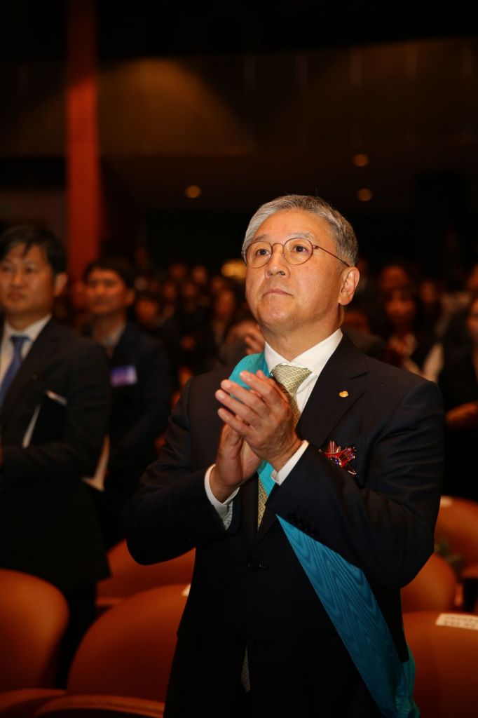 [아시아경제 이선애 기자] '착한 기업인' 수식어가 꼬리표처럼 따라다니는 함영준 오뚜기 회장. 큰 웃음을 지어도 될 자리지만 그는 환한 웃음보다는 쑥스러운 표정을 감추지 못했고 시종일관 겸손한 태도로 임했다. 그래서일까. 그의 얼굴은 누구보다 빛이 났다.16일 오후 3시 서울 강남구 삼성동 코엑스 오디토리움에서 개최된 '제42회 국가생산성대회'에서 함 회장은 금탑산업훈장을 받았다. 산업통상자원부와 한국생산성본부 개최하는 국가생산성대회는 매년 산업 현장에서 생산성 혁신을 통해 국가 경제 발전에 이바지한 기업ㆍ법인 및 단체와 유공자를 발굴해 포상하는 국내 최고 권위의 생산성 분야 행사다.함 회장은 17년간 평균 매출액 증가율 6.4%를 달성하고 사고ㆍ결점ㆍ정지ㆍ품절ㆍ휴근 없는 5제로(0) 운동으로 연 3% 이상 생산량 증대한 공로를 인정받았다. 11.1%의 에너지 절감 등 생산성 향상에 기여한 점도 높게 평가됐다.함 회장은 부친인 고(故) 함태호 명예회장의 '오른손이 하는 일을 왼손이 모르게 하라'는 지론을 몸소 실천하는 듯 좀처럼 모습을 드러내는 법이 없다. 2000년 대표이사 취임 이후 공식석상에 등장한 것은 지난해 7월27일 청와대 상춘재 앞에서 열린 문재인 대통령과 주요 기업인과의 호프 미팅 자리에 참석한 것이 처음, 이번 수상이 두번째다.오뚜기가 14대 그룹 외에 중견기업으로 유일하게 청와대 만찬 초청을 받은 이유는 상생협력과 일자리 창출에서 모범기업으로 꼽혀서다. 또 신을 뜻하는 갓(God)과 오뚜기의 합성어 '갓뚜기'에 대한 국민적인 칭송도 14대 그룹과 어깨를 나란히 할 수 있었던 배경이 됐다. 아무리 좋은 일이라도 크게 회자되고 드러나는 것을 좋아하지 않는 그의 성격 때문에 그는 문 대통령의 칭찬세례에도 연신 고개를 숙이며 조심스러워했다.오뚜기가 착한기업으로 칭송받을 수 있는 것은 함 회장의 '진정성있는 윤리 경영'이 시발점이다. 2016년 함 명예회장 별세 이후 상속세 1500억원을 5년 분납으로 성실히 납부하겠다고 밝히면서 호감을 얻었다. 당연한 납세지만, 액수 자체도 컸고 당시 기업 총수들의 불법ㆍ탈법 증여 소식과 맞물리면서 화제가 됐다.