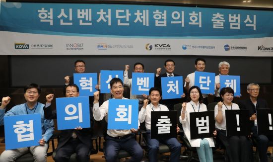 지난해 9월26일 오전 서울 산업은행 스타트업 IR센터에서 열린 '혁신벤처단체협의회' 출범식에서 이용섭 일자리위원회 부위원장과 협의회 의장단이 기념촬영하고 있다. 혁신벤처단체협의회는 혁신벤처기업의 애로사항을 수렴해 이를 정책에 반영시키기 위한 민간주도 협의회다. [이미지출처=연합뉴스]