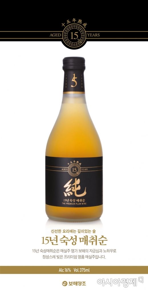 [아시아경제 호남취재본부 박선강 기자] 보해양조(대표이사 임지선)가 신선한 회에 어울리는 깊이 있는 술 ‘15년 숙성 매취순’을 새롭게 선보인다.‘15년 숙성 매취순’은 국내 매실주 시장에서 스테디셀러로 자리 잡은 ‘매취순’의 프리미엄 버전으로, 한층 더 깊은 맛을 찾는 소비자들의 니즈에 부합할 것으로 기대된다.25일 보해양조에 따르면 15년 숙성 매취순은 1982년부터 36년 동안 매실주를 만든 보해가 정성스레 빚은 프리미엄 매실주다. 해남에서 직접 재배한 가장 좋은 재료에 68년 보해양조의 기술력, 여기에 15년이라는 기다림의 미학 끝에 탄생한 것이 15년 숙성 매취순이다.제품 용량은 기존 매취순 오리지널과 같은 375ml이고 도수는 16도로 2도 높다. 그렇지만 오랜 숙성 덕분에 부드럽고 깊은 향을 맛 볼 수 있다.제품 앞면에는 매취순의 상징이자 진실하다는 의미를 담은 ‘純(순)’을 새겼다. 불투명한 무광 유리병은 검은색 라벨을 한층 멋스럽게 표현했다.검은 라벨 위에는 숙성기간 15년을 상징하는 숫자와 함께 24개의 눈금으로 이뤄진 해시계가 보인다. 해시계 오른쪽 아래에 있는 매화잎은 시간의 흐름 속에 깊은 맛을 더해가는 매취순의 가치를 표현했다.매취순이 신선한 회에 어울리는 깊이 있는 술인 만큼 고급 일식집이나 참치전문점 등에서 우선적으로 선보인다. 소비자들은 1만 원에서 1만 5000원 내외에서 접할 수 있을 전망이다.이민규 보해양조 본부장은 “15년 숙성 매취순은 대중성 보다는 술의 맛과 향에 엄격한 기준을 가진 특별한 분들을 위한 프리미엄 제품이다”며 “15년 숙성에서 오는 깊은 맛이 신선한 회를 먹을 때 풍미를 더해주는 최고의 매실주라고 자신한다”고 말했다.한편, 매취순은 지난 1982년 ‘매취’라는 이름으로 출시됐다가1990년 매취순으로 제품명을 바꿨다. 1988년 서울올림픽 때 개최 기념주로 선정되며 국내를 넘어 전 세계인에게 그 이름을 알렸다. 이후 OECD 세계포럼(2008년), 노벨평화상 수상자 광주정상회의(2006년) 만찬주 등으로 채택되며 그 품질을 인정받았다.호남취재본부 박선강 기자 skpark82@naver.com<ⓒ세계를 보는 창 경제를 보는 눈, 아시아경제(www.asiae.co.kr) 무단전재 배포금지>