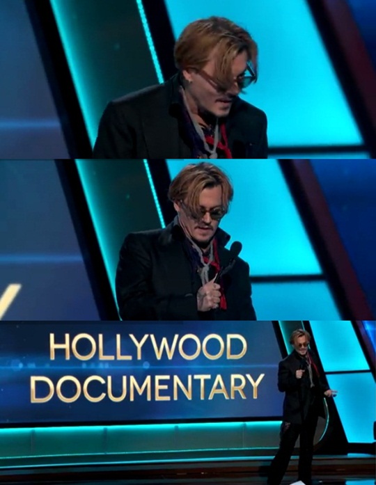 영화 '트랜센던스' 스틸컷에 할리우드 배우 조니 뎁이 등장한 장면(왼쪽)과 힙합 프로듀서 겸 래퍼 밈즈