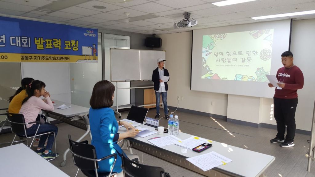 [아시아경제 박종일 기자] 강동구(구청장 이정훈)가 3일 오후 2시 자기주도학습지원센터(강동구 구천면로 395)에서 ‘2018 강동 청소년 프레젠테이션 대회’ 본선을 개최한다.이번 대회는 청소년들이 ‘공감과 소통’이라는 사회 주제에 대한 창의적인 발표를 통해 생각의 폭을 넓히고 의사소통 역량을 기를 수 있도록 마련됐다. 초·중·고등학생이 3명 이내로 팀을 이뤄 5분 내로 파워포인트(PPT)를 활용해 발표하게 된다.10월20일 진행한 예선에서는 10대들에게 익숙한 소셜네트워크서비스(SNS), 게임 등을 통한 소통, 친구 사이, 부모 자녀 간, 인간과 동물과의 소통 등에 이르기까지 다양하고 참신한 발표가 줄을 이었다.