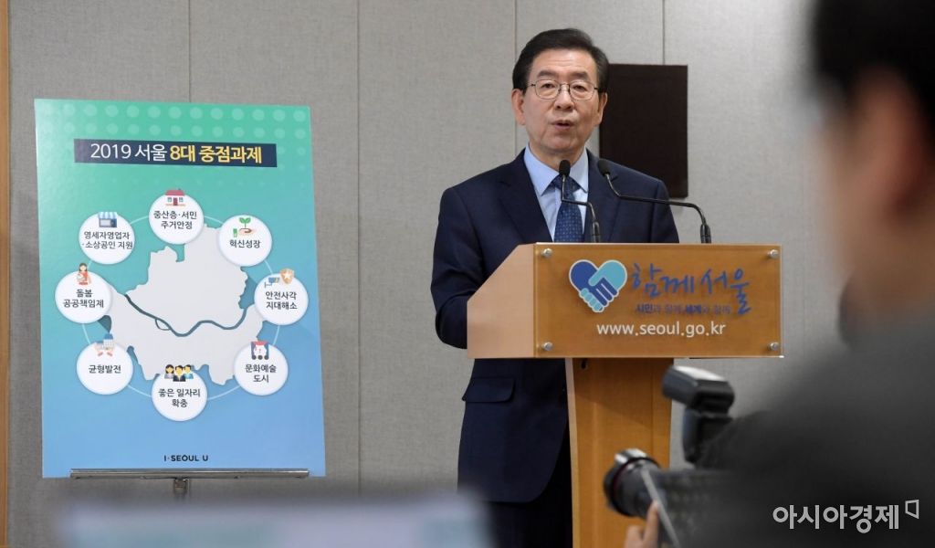 박원순 서울시장이 1일 서울시청 브리핑룸에서 2019년 예산안을 발표하고 있다. 서울시 복지 예산이 처음으로 10조원을 넘는 등 복지와 환경, 도시 분야 씀씀이가 크게 늘면서 서울시 예산안이 역대 최대 규모인 35조원을 돌파했다. /문호남 기자 munonam@