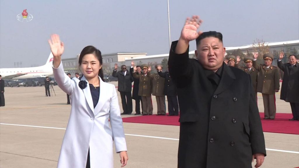 김정은 북한 국무위원장의 초청을 받고 평양을 방문한 미겔 디아스카넬 쿠바 국가평의회 의장이 2박 3일간의 일정을 마치고 6일 귀국했다고 조선중앙TV가 7일 보도했다. 사진은 디아스카넬 의장을 배웅하는 김정은 위원장과 부인 리설주의 모습. 2018.11.7 [이미지출처=연합뉴스]