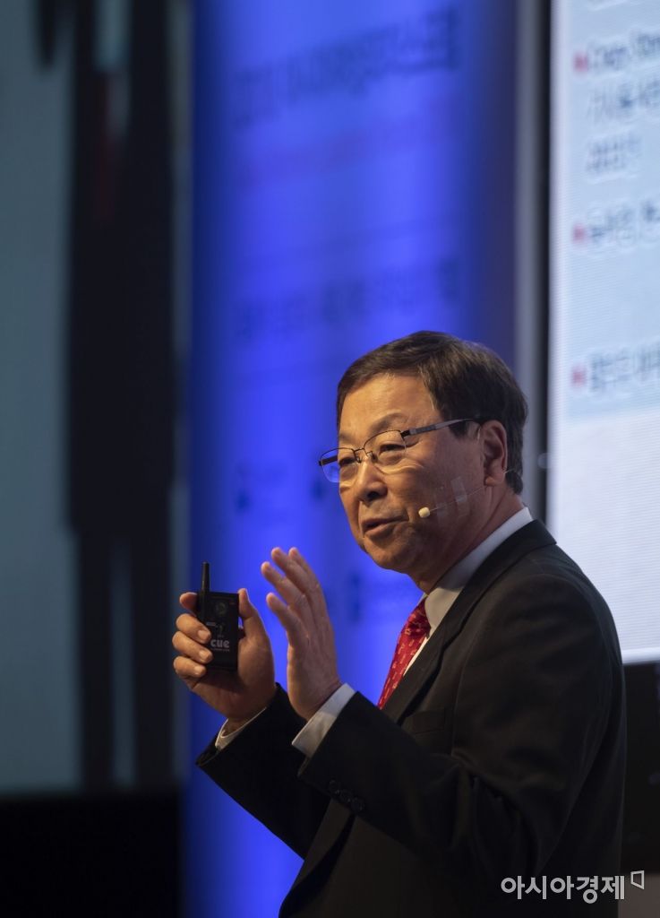 김진형 인공지능연구원장이 8일 서울 중구 롯데호텔에서 열린 '2018 아시아여성리더스포럼'에서 '디지털 대변혁의 시대 핵심가치' 라는 주제로 강연을 하고 있다./윤동주 기자 doso7@