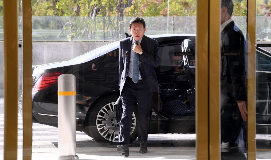 신동빈 롯데그룹 회장이 8일 서울 송파구 롯데월드타워 사무실로 출근하고 있다. 신 회장은 뇌물 공여 등의 혐의로 기소돼 1심에서 실형을 선고받았다가 지난 5일 2심에서 집행유예로 풀려난 뒤 이틀간의 휴식을 마치고 경영 일선에 복귀했다./김현민 기자 kimhyun81@