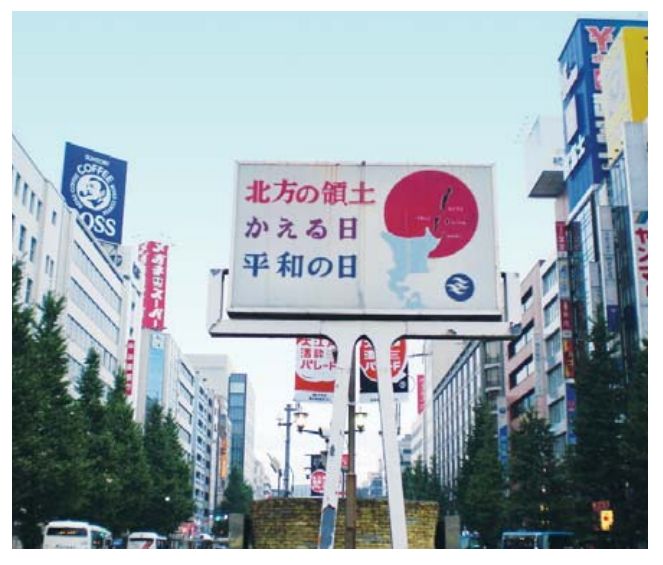 북방영토인 쿠릴4도를 되찾는 날이 평화의 날이라 광고하고 있는 일본 도쿄역에 있는 광고판의 모습(사진=동북아역사넷)