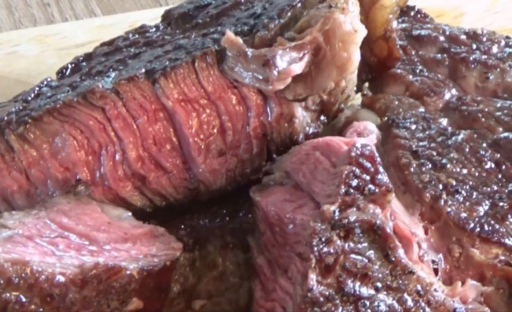 스테이크의 붉은색 액체는 피가 아닙니다. 스테이크의 풍미를 더해주는 육즙입니다. [사진=유튜브 화면캡처]