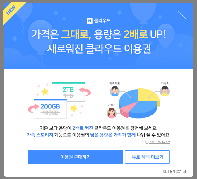 잔여 저장 공간을 가족과 함께 나눠 쓰는 '가족 스토리지' 기능 추가
