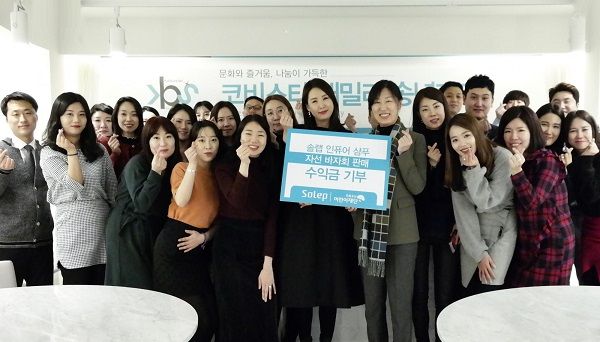 두피 전문 코스메틱 솔랩(Solep)이 지난 12월 10일(월) 솔랩의 본사인 ㈜코비스타 사옥에서 연말 자선행사를 진행했다.솔랩의 두피건강 나눔&캠페인의 일환으로 진행된 이번 연말 자선행사에서는 △자선 바자회, △코비스타 임직원들의 위탁가정 어린이를 위한 선물 만들기, △솔랩 두피클리닉 샴푸인 인퓨어 샴푸 판매 수익금 기부식이 진행됐다.특히 선물 만들기 행사는 코비스타 임직원들이 일일산타가 되어 위탁가정 어린이와 청소년들에게 필요한 선물들을 직접 고르고 포장하는 등 따뜻한 자선행사로 치러졌다. 바자회 수익금과 인퓨어샴푸 판매 수익금, 코비스타 임직원 선물 등은 초록우산 어린이재단 인천가정위탁지원센터로 기부되어 모두 위탁가정 아동과 청소년을 위해 쓰일 예정이다.솔랩 관계자는 “두피 전문 코스메틱 선두 브랜드로서 사회적 책임을 다하기 위해 솔랩은 작년 인퓨어 샴푸를 출시하고 500만원 상당의 샴푸를 백혈병소아암협회에 기부하는 등 나눔, 기부활동을 펼치고 있다”며, “내년에도 다양한 자선행사를 진행하고 이를 계기로 모든 사람들이 두피건강의 필요성을 인식하고 관리하여, 두피건강으로 인한 아름다움과 행복감을 느끼도록 노력할 예정”이라고 밝혔다.솔랩은 두피팩, 토닉, 앰플, 크림 등 약 30여종의 두피 전문 제품을 보유하고 있는 두피케어 전문 코스메틱 브랜드다. 국내에서는 웰킨 두피/탈모센터에서, 해외에서는 전문 살롱에 프로페셔널 라인으로 유통되고 있다. 제품은 두피 상태별 전문 프로그램 내 처방되거나, 내방 고객에 홈케어용으로 판매되고 있다. 솔랩 제품들은 화학성분을 최대한 배제한 천연유래성분으로 제조되며, 이미 까다로운 30만 고객에게 효과와 성분을 검증 받은 바 있다.코비스타는 글로벌 뷰티 프랜차이즈 기업으로 업계 1위 두피/탈모관리 브랜드인 웰킨 두피/탈모센터와 두피 전문 코스메틱 솔랩, 스마트 뷰티센터 비티엘을 보유하고 있다. 웰킨은 올해 서울 문정점, 고양 정발산역점을 신규 오픈하여 현재 전국 51개점, 해외에는 일본, 중국, 호주, 캄보디아 등 4개국 6개 매장을 운영 중이다. 솔랩 역시 한국뿐만 아니라 호주, 일본, 미국, 중국, 에콰도르 등 국내외 9개국에 진출했으며 온라인 유통채널도 확장시켜 11번가, 네이버 스토어팜에서 솔랩 대표 샴푸인 인퓨어 샴푸를 만나볼 수 있다.임소라 기자 mail00@asiae.co.kr<ⓒ경제를 보는 눈, 세계를 보는 창 아시아경제(www.asiae.co.kr) 무단전재 배포금지>