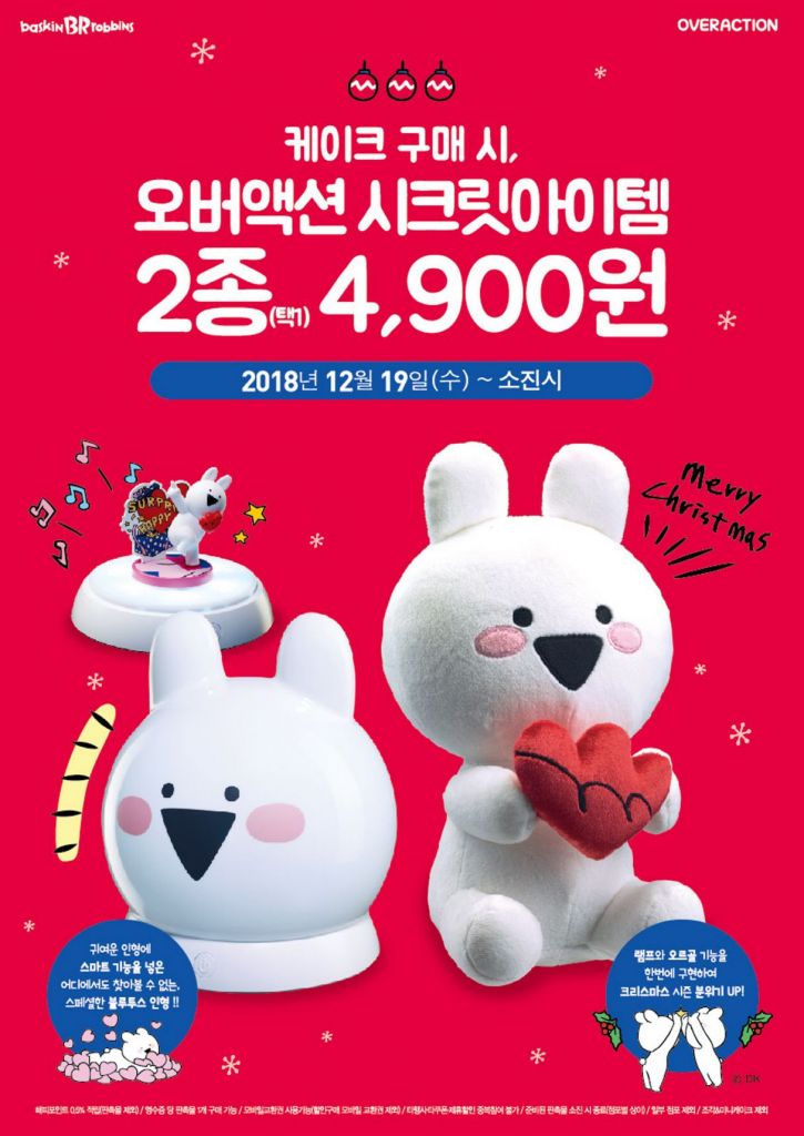 [아시아경제 이선애 기자]배스킨라빈스가 ‘오버액션 시크릿 오르골 램프 프로모션’을 실시한다고 19일 밝혔다. 이번 프로모션은 매장에서 아이스크림 케이크를 구매하는 고객에게 ‘오버액션 시크릿 오르골 램프’를 4900원에 증정하는 행사다.현재 배스킨라빈스는 ‘오버액션 시크릿 오르골 램프’, ‘오버액션 시크릿 블루투스 인형’으로 구성된 오버액션 시크릿아이템 2종의 프로모션을 진행 중이다. 인형, 램프 프로모션 모두 한정수량 제작되어 조기소진 될 수 있으니 구입을 원한다면 서두르는 것이 좋다.‘오버액션 시크릿 오르골 램프’는 램프와 오르골 두 가지 용도로 사용할 수 있다. 뚜껑을 닫은 상태에서 조명을 켜면 은은한 빛이 나는 무드등이 되며, 뚜껑을 열면 숨겨져 있던 귀여운 오버액션토끼 캐릭터가 등장하며 캐롤 멜로디가 흘러나온다.사용 방법도 간단하다. 버튼 하나로 램프와 오르골 음악을 켤 수 있고 터치 센서로 램프의 밝기를 조절할 수 있다. 또한 별도 건전지가 필요 없는 USB 충전식이라 편리하게 사용할 수 있다.오는 25일까지 해피포인트앱 사용 고객 대상 할인 혜택도 마련했다. 매장에서 아이스크림 케이크 구매시 해피포인트 앱을 보여주면 오버액션 시크릿아이템 2종을 2천원 할인된 2900원에 제공한다. 해피포인트 앱의 스마일페이로 2만5000원 이상 결제시 4000원 할인 혜택을 추가로 제공하고 있으며, 스마일클럽 고객은 스마일캐시 1000원 적립도 가능하다. 이번 행사는 프로모션 상품 소진 시까지 진행되며 상품의 별도 구매는 불가하다. 매 결제시마다 1회만 행사 참여가 가능하고, 프로모션 상품 비용을 제외한 결제 금액의 0.5%는 해피포인트 적립 가능하다. 타 행사, 제휴 할인, 타 쿠폰 중복 적용은 불가하다.이선애 기자 lsa@asiae.co.kr<ⓒ경제를 보는 눈, 세계를 보는 창 아시아경제(www.asiae.co.kr) 무단전재 배포금지>