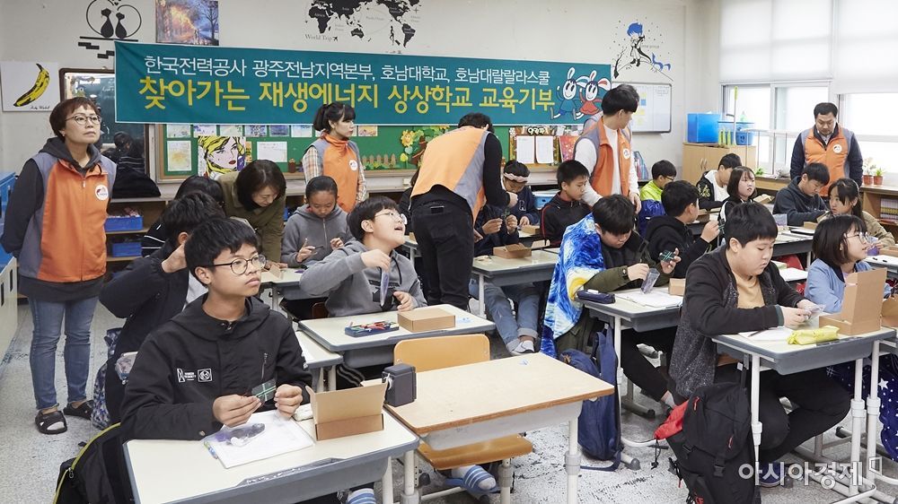 [아시아경제 호남취재본부 김춘수 기자] 호남대학교(총장 서강석)와 호남대랄랄라스쿨(대표 정윤희), 한국전력공사 광주전남지역본부(본부장 임철원)는 농산어촌 지역 청소년들의 4차산업 혁명 시대 진로직업 탐색 및 방과 후 교육을 위한 ‘찾아가는 재생에너지 상상 학교’ 교육 기부를 지난 10월 22일부터 12월 18일까지 진행했다고 21일 밝혔다.호남대학교와 호남대랄랄라스쿨, 한국전력공사 광주전남지역본부가 공동 주최, 주관한 이번 ‘찾아가는 재생에너지 상상 학교’ 교육 기부는 전라남도 도서벽지지역 초·중·고등학교 27교(완도지역 14교, 신안지역 8교, 진도지역 2교, 함평지역 2교, 장흥지역 1교)를 대상으로, 4차산업혁명 맞춤형 교육 패러다임을 기획해, 태양광패널을 이용한 태양광 자동차 만들기, 아두이노를 이용한 나만의 전도성잉크 피아노 만들기 프로그램을 운영해 일선 학교로부터 큰 호응을 받았다.정윤희 대표는 “교육부의 대학주도 방과후학교 사회적기업 호남대랄랄라스쿨은 한국전력 광주전남본부, 호남대학교와의 적극적인 연계를 통해 방과후학교와 다양한 교육·문화·체육·인성 프로그램 등을 제공하고 있다”며 “농어촌 지역 활성화와 자유학기제 운용을 위한 진로의식 함양 및 직업 가치관 교육 활동 등을 통해 지역 학생들에게 다양한 교육 서비스를 확대 제공하겠다”고 덧붙였다.한편, 호남대랄랄라스쿨은 한국전력공사 광주전남지역본부, 호남대학교와 지난 8월 상호 발전 및 지역 교육 활성화를 위한 MOU를 체결하여, 각 기관의 자체 인프라를 적극 활용해 농어촌지역 청소년들에게 4차산업혁명 인재양성 교육프로그램을 제공해 지역 간 교육격차 해소와 공교육 내실화, 사교육비 절감 등에 기여하고 있다.호남취재본부 김춘수 기자 ks7664@hanmail.net<ⓒ경제를 보는 눈, 세계를 보는 창 아시아경제(www.asiae.co.kr) 무단전재 배포금지>