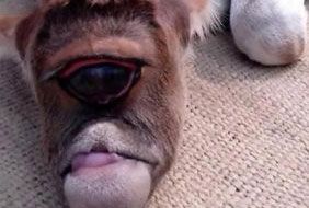 [아시아경제 이진수 선임기자] 인도 서(西)벵골주 부르드완 지역에서 최근 커다란 눈이 하나뿐인 외눈박이 송아지가 태어나 현지 주민들이 흥분하고 있다고.이번에 태어난 외눈박이 송아지는 코가 아예 없다.송아지는 태어나자마자 어미로부터 버림 받았다. 그러나 주민들이 녀석을 거둬 보살피고 있다고.동영상 속의 외눈박이 송아지는 숨을 헐떡거리며 쉰다.송아지 주인에 따르면 외눈박이 송아지가 태어나자 주민들이 구경하러 몰려 들었다. 그러나 주민들은 곧 외눈박이 송아지를 '신(神)의 기적'으로 간주해 숭배하기 시작했다. 외눈박이 송아지가 집안에 복을 가져다 줄 것으로 믿기 때문이다.송아지가 안고 있는 기형을 단안증(單眼症ㆍcyclopia)이라고 한다. 'cyclopia'라는 이름은 그리스 신화의 외눈박이 거인 키클롭스(Cyclops)에서 비롯된 것이다.단안증은 태아가 성장하는 과정에서 두뇌의 좌우엽이 분리되지 못해 안구 역시 좌우로 분화하지 못한 결과 눈이 하나인 것처럼 보이는 질환이다. 양쪽 눈이 하나로 융합해 하나의 안와 안에 자리잡으면서 얼굴 중앙에 안구가 발생하는 것이다.이는 동물은 물론 사람에게도 나타날 수 있다.외눈박이의 코는 커다란 관 같은 원시적 형태를 갖춘다. 코가 전혀 없거나 작은 돌기만 있는 경우도 있다.원인은 확실히 밝혀지지 않았으나 물리적, 화학적, 유전적 인자가 복합적으로 작용한 결과로 알려져 있다.외눈박이 포유동물은 뇌 형성이 제대로 이뤄지지 못해 오래 살지 못하는 게 보통이다.2017년 5월에는 인도 아삼주에서 외눈박이 염소가 태어난 바 있다.<center><div class="slide_frame"><input type="hidden" id="slideIframeId" value="2015070615420696038A">