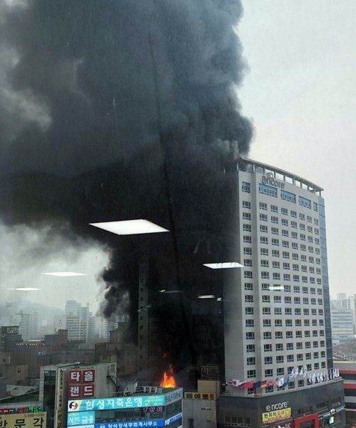 [아시아경제 고형광 기자] 충남 천안의 한 호텔서 화재가 발생했다.14일 오후 4시56분께 충남 천안시 서북구 쌍용동 라마다앙코르호텔에서 화재가 발생했다.소방당국은 소방차 20대와 소방관 50여명이 출동시켜 진화작업에 나섰다. 소방당국은 호텔에 투숙객과 직원이 몇 명이 있었는지는 정확히 확인되지 않고 있다고 밝혔다.현재까지 연기를 흡입한 5명이 병원으로 이송된 것으로 알려졌다. 소방당국은 지상에 에어 매트리스를 설치하는 등 만약의 사태에 대비하고 있다.소방당국 관계자는 "지하에서 불꽃이 보이고 연기가 나기 시작했다는 신고가 접수돼 출동했다"며 "화재 진화작업과 함께 호텔 내부에 있는 투숙객 수색작업을 병행하고 있다"고 말했다.지난해 9월 오픈한 라마다앙코르호텔은 지하 5층~지상 21층에 420실 규모다.고형광 기자 kohk0101@asiae.co.kr<ⓒ경제를 보는 눈, 세계를 보는 창 아시아경제(www.asiae.co.kr) 무단전재 배포금지>