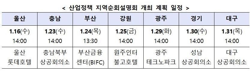 [아시아경제 이광호 기자]산업통상자원부는 지난해 말에 발표한 제조업 혁신 전략 등 지역 산업생태계의 활력 회복을 위한 '산업정책 설명회'를 16일 울산 지역을 시작으로 전국을 순회하며 개최한다고 밝혔다.산업정책 설명회는 지역경제 활성화를 위해, 정부의 산업 정책 및 지역 기업 지원제도를 직접 설명해 지역 경제인들의 정부 지원제도에 대한 이해도와 활용도를 제고하고자 마련됐다.이번 정책설명회는 지자체와 함께 지역기업, 협회·단체 및 지역 혁신기관(대학, 연구소 등) 등을 대상으로 산업 정책과 중소기업시책을 연계 설명하고, 지역 기업인들의 현장 의견 청취 및 질의응답을 통해 궁금한 사항을 해소하는 자리가 될 예정이다.산업부는 제조업 혁신으로 경제 활력을 회복하기 위한 제조업 활력회복 및 혁신 전략을 설명하면서, 지역 주력산업과 관계가 높은 자동차·조선, 반도체·디스플레이 등 4개 산업군별 맞춤형 고부가가치화와 신산업 지원 전략 및 중소·중견기업 중심의 생산시스템 혁신 전략을 소개해 침체된 지역경제 활성화를 위한 방향을 제시한다.산업부는 올해도 국가혁신클러스터 육성, 지역거점기관 지원, 광역협력권 산업 육성, 산업단지 혁신 등 지역혁신 역량강화 사업에 전년대비 30% 증가한 1조3500억원을 투입해 지역 기업 및 혁신기관을 중심으로 지역주도의 혁신성장 역량을 강화하고, 지역 일자리 창출 및 지방투자 촉진 등 지역경제 활성화에 기여할 계획이다.더불어 우리 경제의 근간인 제조업의 혁신과 재도약을 위해 주력 산업의 고부가가치화, 미래 먹거리 창출을 위한 신산업 육성 등 분야별 핵심 기술개발(R&D) 등에 2조5000억원 이상을 지원할 예정이다.아울러 기업의 투자애로를 적극적으로 해소하기 위해 민간 신산업 프로젝트 전담관을 지정해 투자 성사까지 밀착 지원하고, 기존 규제에 발목이 잡혀 새로운 제품과 서비스가 싹도 트지 못하는 일이 없도록, 17일부터 시행되는 규제샌드박스(산업융합촉진법) 활용 방안에 대해서도 자세히 설명할 방침이다.마지막으로 수출활력 제고를 위해 KOTRA, 무역보험공사 등 수출 지원기관 실무 전문가와 함께 맞춤형 수출 지원 상담회를 개최해 무역금융 217조원 지원, 1400개사 글로벌 공급망 진출 강화 등 지원정책을 소개하고 지역기업의 수출애로를 직접 청취·해소한다.박건수 산업부 실장은 이번 정책 설명회를 "정부와 지역간 정보를 공유하고 소통하는 자리"라고 하면서 "산업부는 지역의 새로운 성장동력을 확보하고 키워나갈 수 있도록 수요자 중심의 정책을 지속적으로 발굴해 지역경제의 성장판이 다시 열릴 수 있도록 앞장서겠다"고 약속했다.이광호 기자 kwang@asiae.co.kr<ⓒ경제를 보는 눈, 세계를 보는 창 아시아경제(www.asiae.co.kr) 무단전재 배포금지>