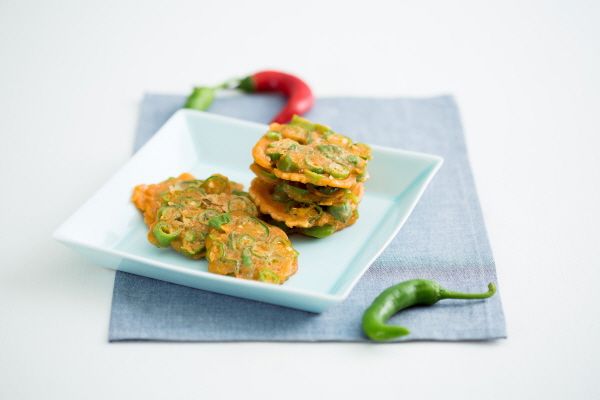 3. 반죽에 풋고추를 넣어 가볍게 섞는다.