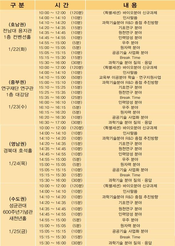 2019년도 과학기술분야 R&D 사업설명회 세부일정