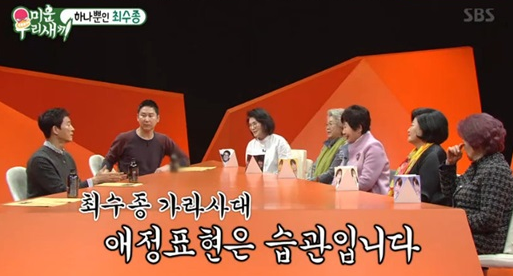 27일 방송한 SBS '미운우리새끼'에서는 최수종이 스페셜MC로 출연했다. 이날 신동엽은 "어머님들에게도 어찌하면 살갑게 나이가 들어서도 애정 표현을 하는지 팁을 공유해달라"고 말했다.