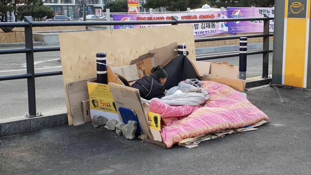 일부 노숙인은 의도적으로 범죄를 저질러 감옥행을 택하기도 한다. 또 다른 경찰 관계자는 “추위는 피하고 싶은데 시설은 들어가기 싫은 노숙인 중 일부가 의도적 감옥행을 결심한다”라며 “‘차라리 감옥에 보내달라’며 술에 취해 행패를 부리는 식인데, 노숙인들 중 별 다섯개(전과 5범)는 기본이고 60범도 다반사”라고 전했다.