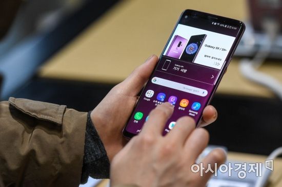9일 서울 종로구 광화문 KT스퀘어에서 열린 '삼성 갤럭시 S9 런칭행사'에서 고객들이 갤럭시 S9을 체험하고 있다./강진형 기자aymsdream@