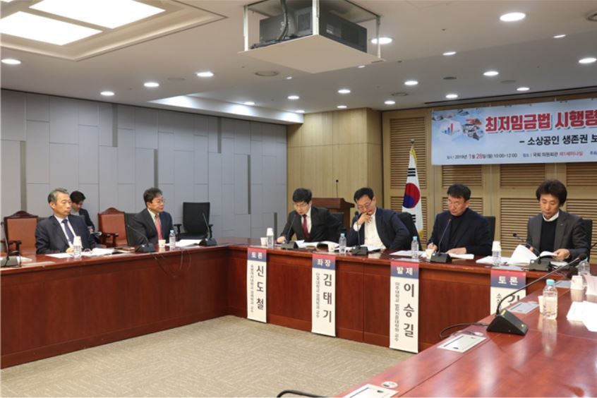 자유한국당의 정종섭, 윤상직 의원은 28일 국회에서 한국경영자총협회와 '최저임금법 시행령 개정, 무엇이 문제인가?'를 주제로 정책토론회를 공동 주최했다.