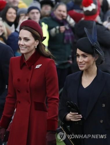 영국의 케이트 미들턴 왕세손빈(왼쪽)과 메건 마클 왕자비. 사진=연합뉴스(AP)