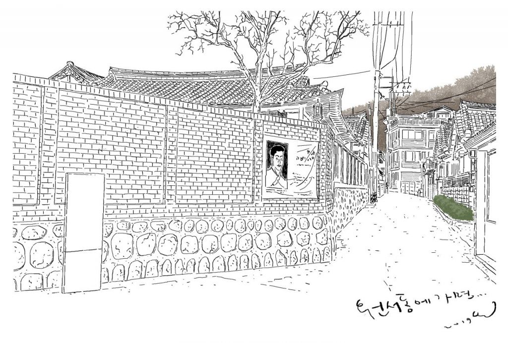 창덕궁과 담장 하나를 사이에 두고 마주한 원서동길은 옛 빨래터와 고택, 다양한 공방이 모여 과거와 현재가 공존하는 고즈넉한 분위기를 연출해낸다. 일러스트 = 오성수 작가