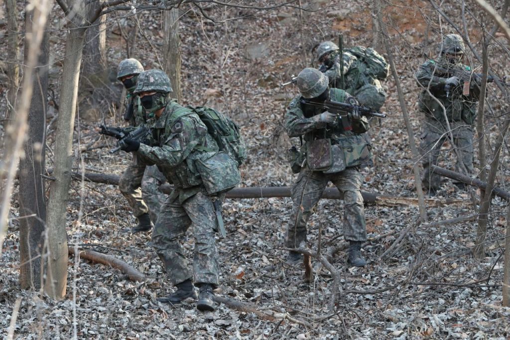 지난달 17일 오후 경기도 파주시 광탄면에서 육군 동원전력사령부 예하 72사단 장병들이 혹한기 전술훈련을 실시하고 있다. [사진=연합뉴스]