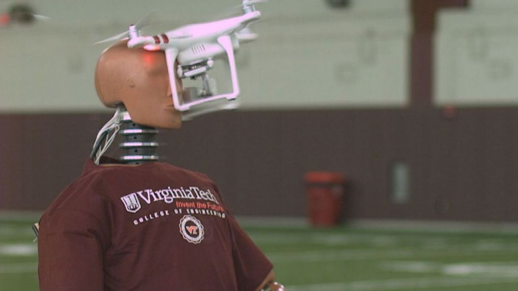 2017년 버지니아 공대 연구팀이 진행한 UAS(무인 항공 시스템) 테스트 실험 중 한 장면. 드론 추락으로 인한 심각한 부상 및 사망 가능성을 보여준 실험이다. 사진 = Virginia Tech 영상 캡쳐